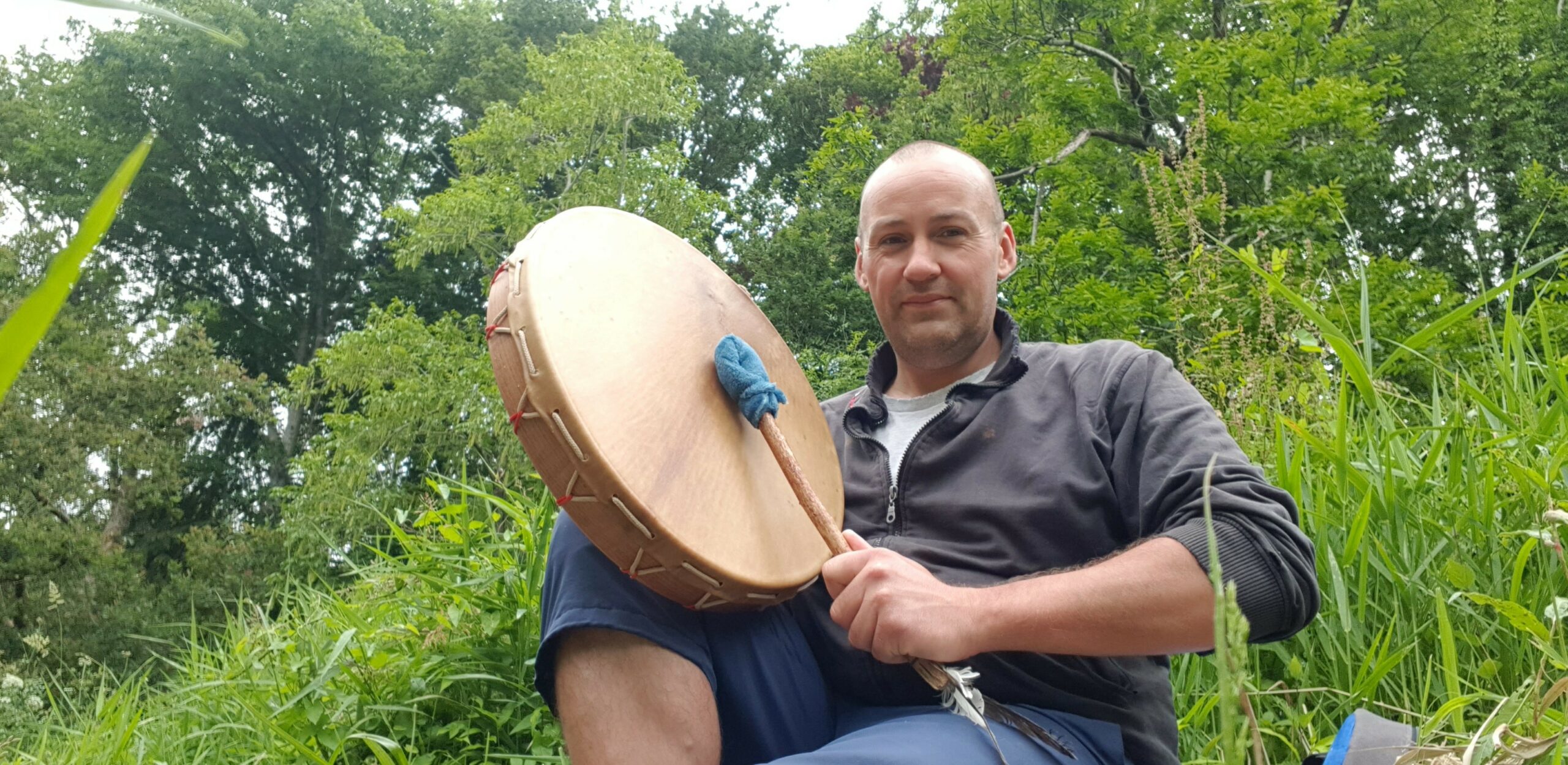 Comprenant que je suis issu d’une famille de chamans (qui s’ignorent)(un père au magnétisme inconscient très fort, un oncle qui travaille dans le milieu médical toute sa carrière, et un deuxième oncle très proche de la nature et des animaux), je pousse la littérature et la formation vers le chamanisme, et m’aperçois que celui-ci est un lien intrinsèque entre beaucoup de thérapies, ce qui me motive à adopter cette « philosophie de vie ». Commençant à lire sur le sujet, et après un voyage sonore au tambour, j’ai la confirmation : il faut absolument que je continue dans cette voie, et que je mette au monde mon tambour (il nait 9 mois plus tard).